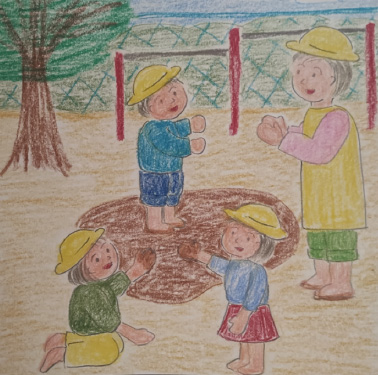 造形はテンプレートを教えていただけたのが助かりました。男の子・女の子・女の子と保育士1名をいるようにして、顔のパターン・背景のパターン(園庭・保育室)を教えてもらえたのが良かったです。